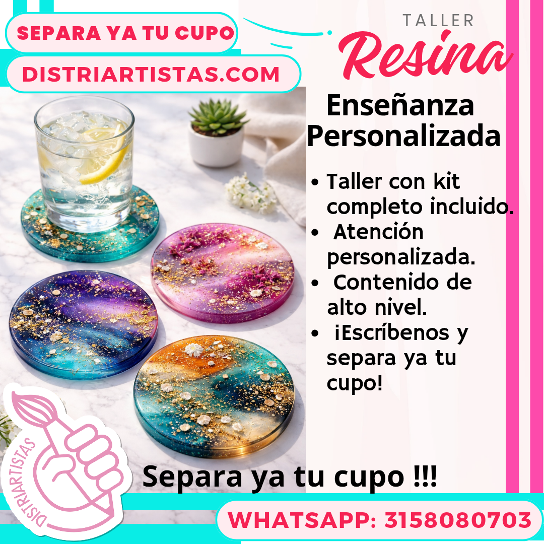 En nuestro taller de resina artística, aprenderás paso a paso cómo transformar líquidos y pigmentos en piezas sólidas, brillantes y resistentes como dijes, portavasos, llaveros, accesorios, cuadros y objetos decorativos, usando moldes, inclusiones y acabados profesionales. No necesitas experiencia previa: trabajamos desde nivel básico hasta técnicas más avanzadas, adaptándonos al ritmo de cada participante.