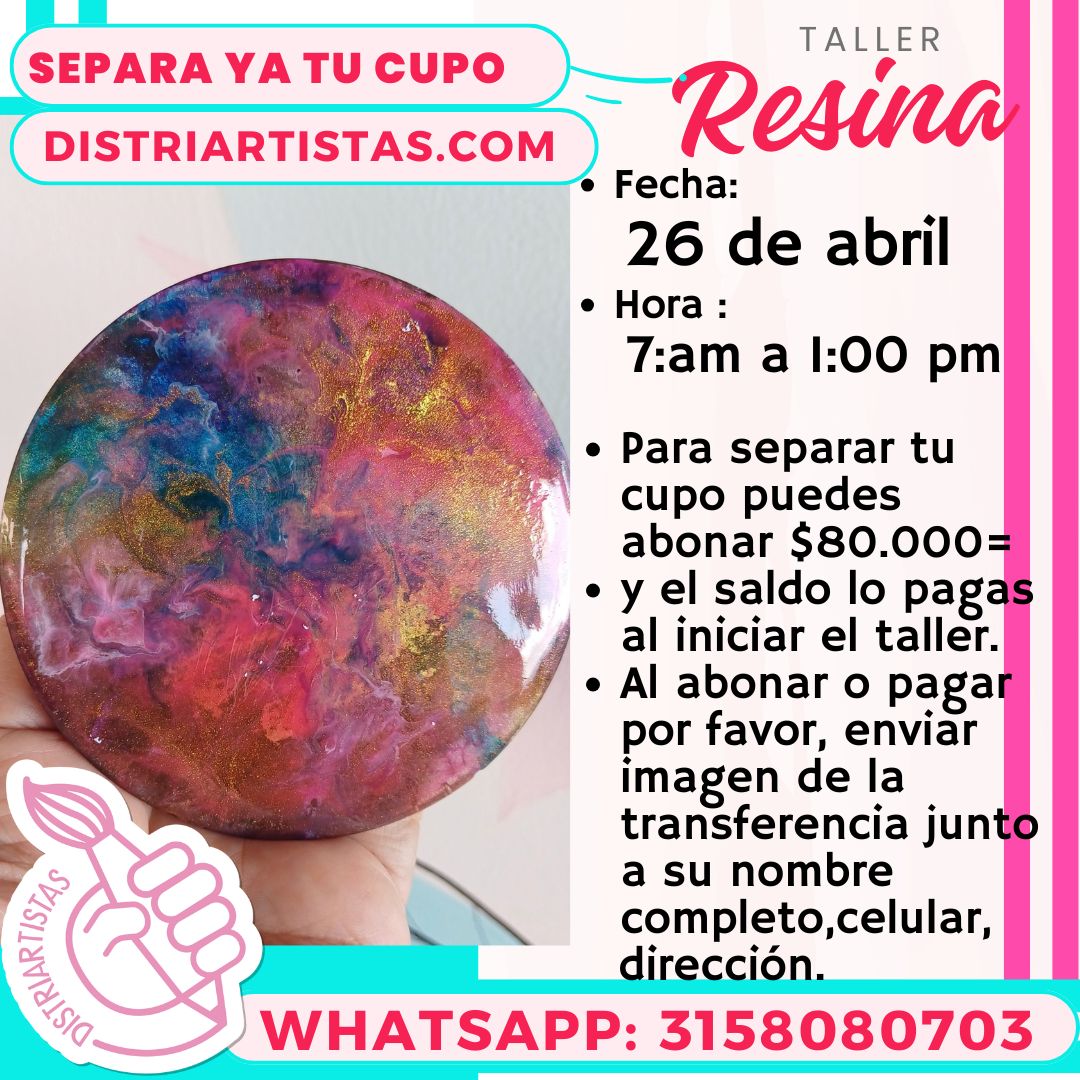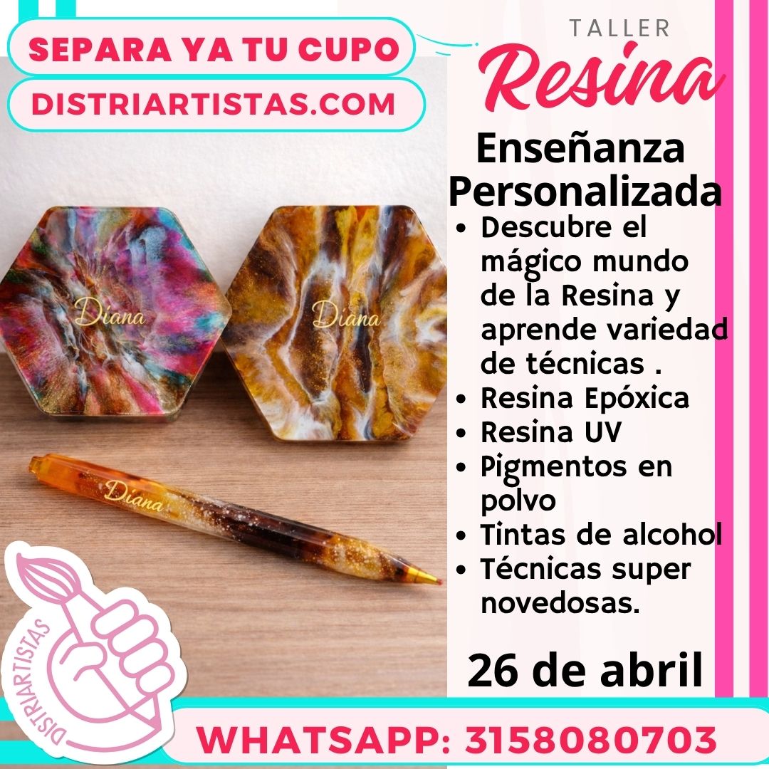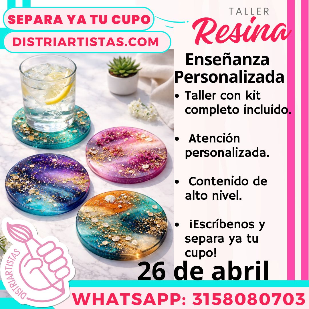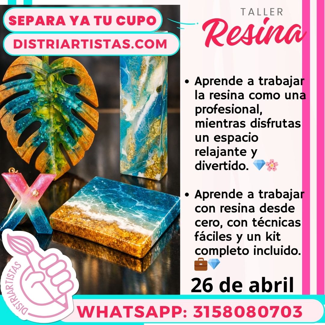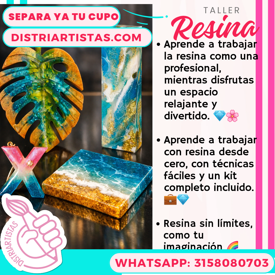 El Taller de Resina Artística en Bucaramanga de Distriartistas es una experiencia creativa diseñada para niños desde los 10 años, jóvenes y adultos que desean aprender a trabajar la resina epóxica y UV para crear piezas decorativas, utilitarias y artesanales de alta calidad.